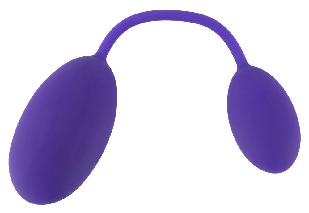 Training device and sex toy in one!Love balls for anus and vagina that are connected by a flexible silicone string. With sensual rotating ball weights on the inside. The larger ball is inserted into the vagina, the smaller ball is inserted into the anus. This way there is no dangling string when the balls are worn during the day. They are also suitable for specific pelvic floor exercises.Complete length 20.5 cm, Ø ball 1: 2.9 cm, Ø ball 2: 3.9 cm; length of strap 7 cm; 122 g. Silicone with a PU coating.