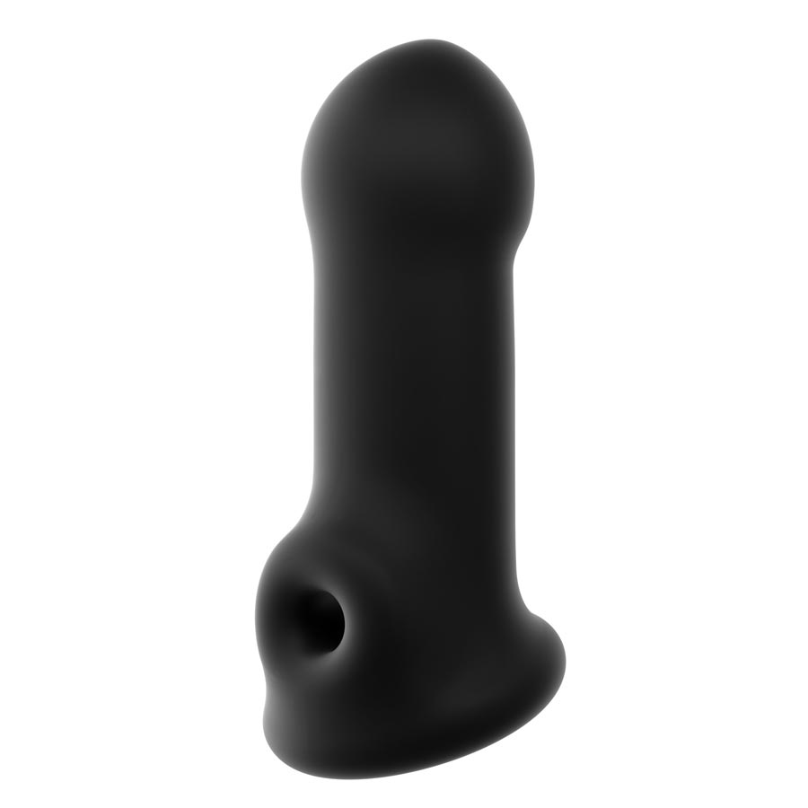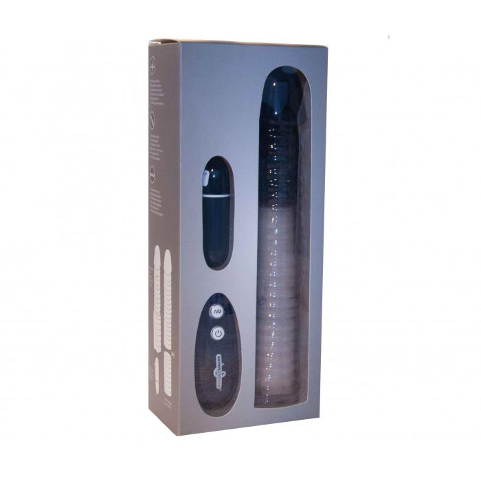 Sleeve with textured base for intense stimulation. Developed to mimic the feel of the human body. Enhanced tip for intense internal stimulation. Your partner will love it. Soft and stretchy. Fit most sizes.