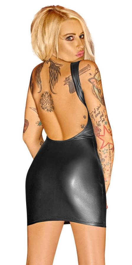Skin-tight mini dress with lacing at the front. It is low cut at the back. Stretchy black wetlook. 80% polyamide, 20% elastane. IMPORTANT: there is a separate size chart for NOIR