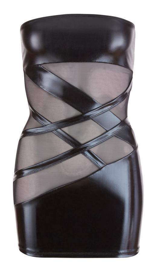 Seductive, skin-tight dress!All eyes will be on you the next time you go to a party wearing this stylish tube dress. The strapless dress is made out of shiny wetlook material. It also has a cheeky powernet inset at the front that has wetlook stripes over it. Black. 92% polyester, 8% elastane; net 90% polyamide, 10% elastane.