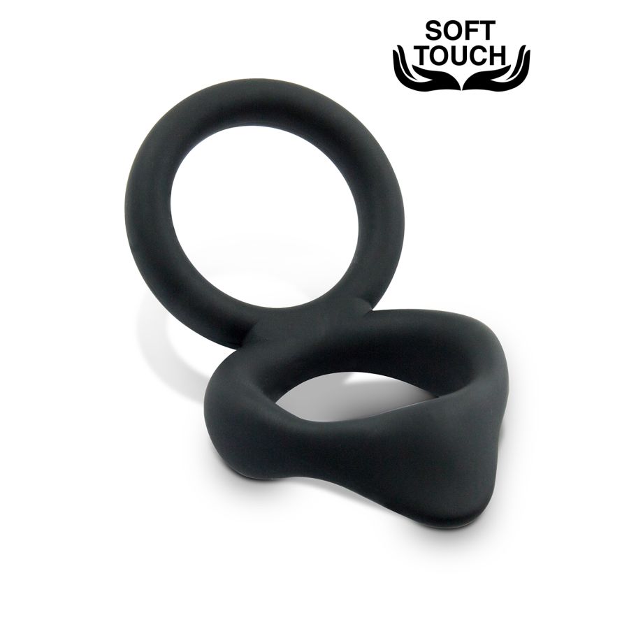 Mr. Cock Cockring - doppio anello, avvolge il pene e i testicoli separatamente e quindi aumenta la congestione. La spessa punta in silicone stimola anche il perineo e aumenta la piacevole sensazione.