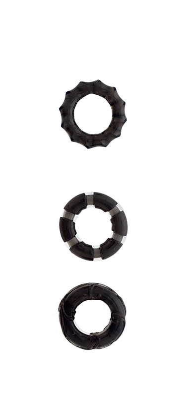 Set of 3 cockrings.Diameter 4.5 cm.Ergonomic design.One size fits all.Waterproof.Easy to clean.\u00A0Always a penis ring that fits with this set of 3 rings. The cock rings are made of TPE, hygienic, stretchy and flexible, so one size fits (almost) all. The diameter is 4.5 cm and each has another design with various contours.