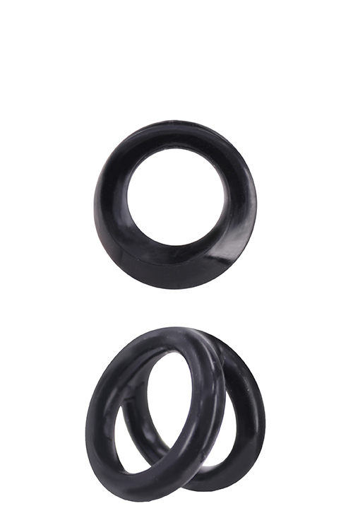 Stretchable silicone cockrings.One beveled edge cockring.One twin loop cockring.For harder and firmer erections.