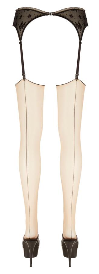 Sexy senza tempo!Calze reggicalze con cucitura decorativa nella parte posteriore per gambe lunghe senza fine. Classico da agganciare alla giarrettiera e con un semplice bordo incatenato nero.84% poliammide, 16% elastan.