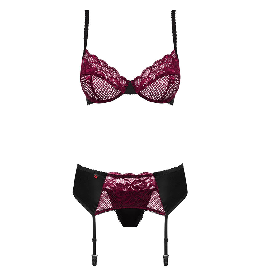 - set includes bra, garter belt and thong