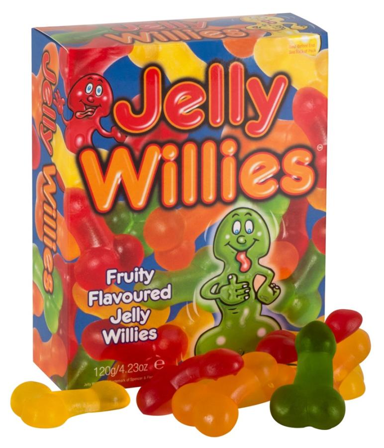 Caramelle alla frutta colorate a forma di pene. Scatola da 150 g.
