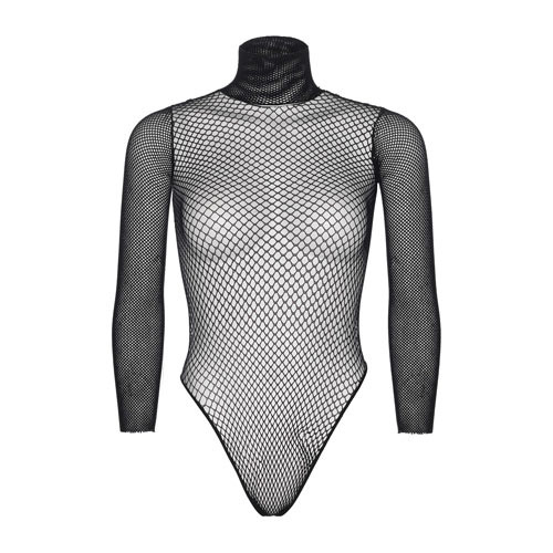 Body a maglie strette nero con maniche lunghe e collo alto.