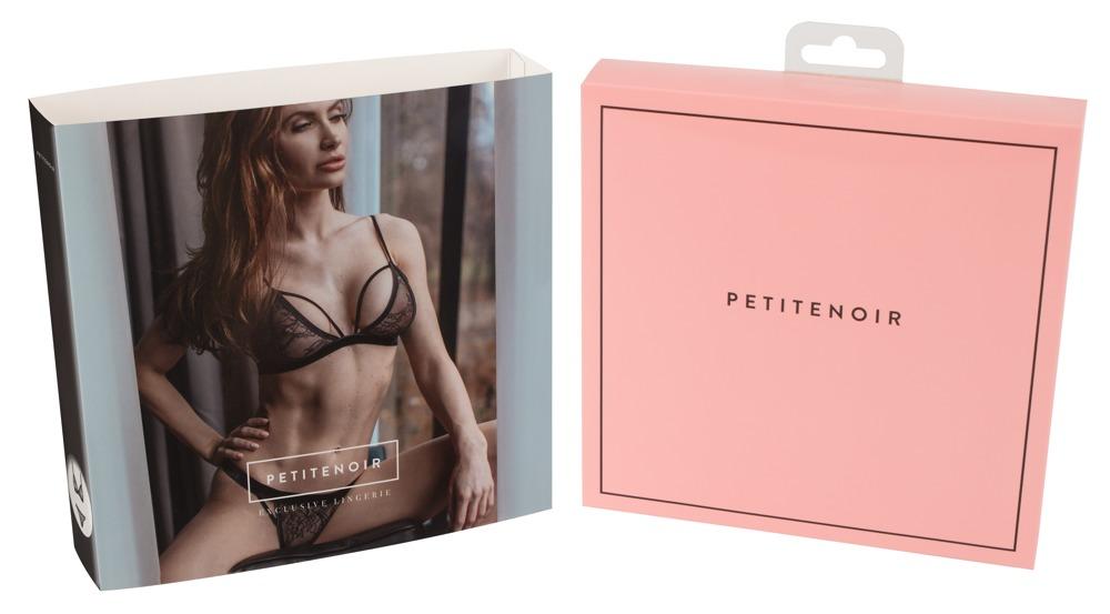Seducente mix di materiali!Morbido reggiseno e perizoma in un sofisticato set di pizzi abbinati a dettagli in velluto e metallo color oro. Il reggiseno ha una fascia elastica, scollature elastiche, spalline regolabili e chiusura a gancio sul retro, il perizoma ha un elastico in vita. Per una perfetta vestibilità e il massimo comfort!95% poliammide, 5% elastan.Attenzione: Petitenoir ha una tabella di dimensioni a parte!