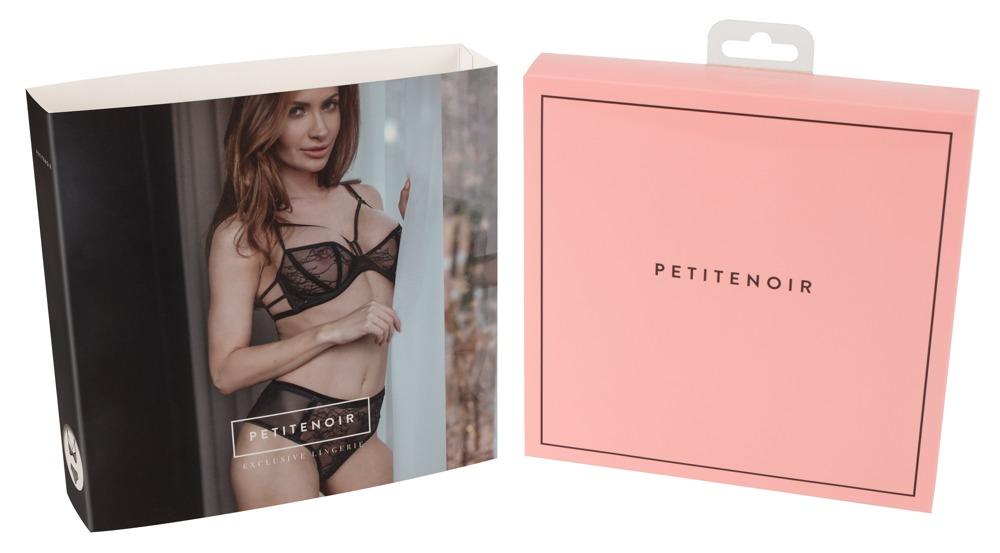 Seducente mix di materiali!Reggiseno e mutandine con ferretto e mutandine in un sofisticato set di pizzi abbinati a dettagli in velluto e metallo dorato. Il reggiseno è dotato di stralli, scollature elastiche, spalline elastiche e regolabili e chiusura con gancetto sul retro, le mutandine hanno un inserto in Powernet trasparente ai lati e una cintura elastica in vita. Per una perfetta vestibilità e il massimo comfort!95% poliammide, 5% elastan.Attenzione: Petitenoir ha una tabella di dimensioni a parte!