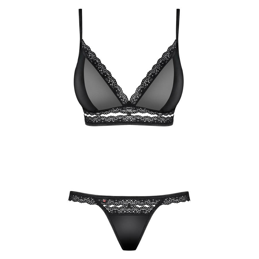 - set realizzato in tessuto satinato, rete trasparente e pizzo