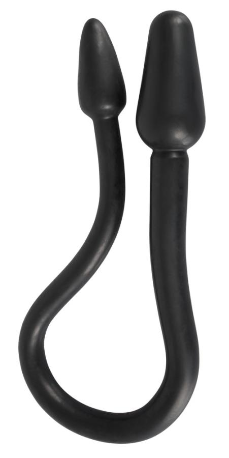 Doppio dildo per divertirsi di più da soli o in coppia!Doppio dildo flessibile con tappo ad ogni estremità. Per i giochi da soli, inserire vaginalmente e anally allo stesso tempo, per i giochi per due, tutti possono usare una delle spine. Bella superficie di scivolamento. Nero.Lunghezza totale 76,5 cm, Ø 2-5,1 cm. TPE.