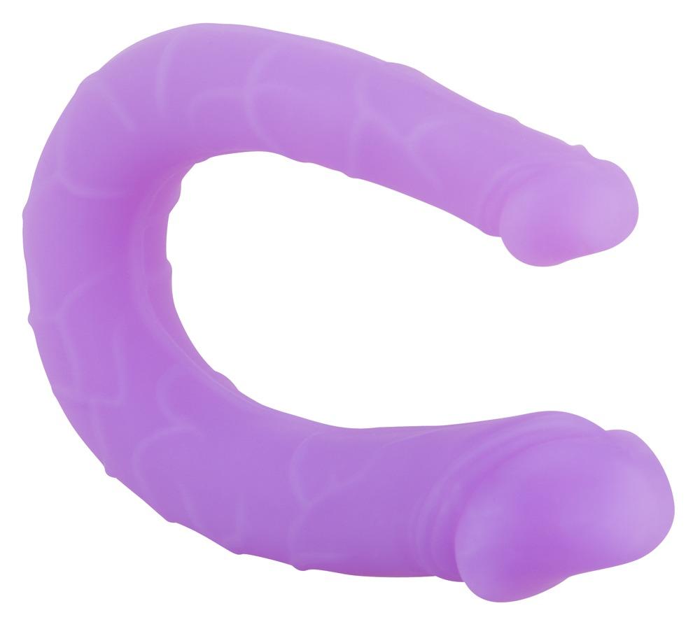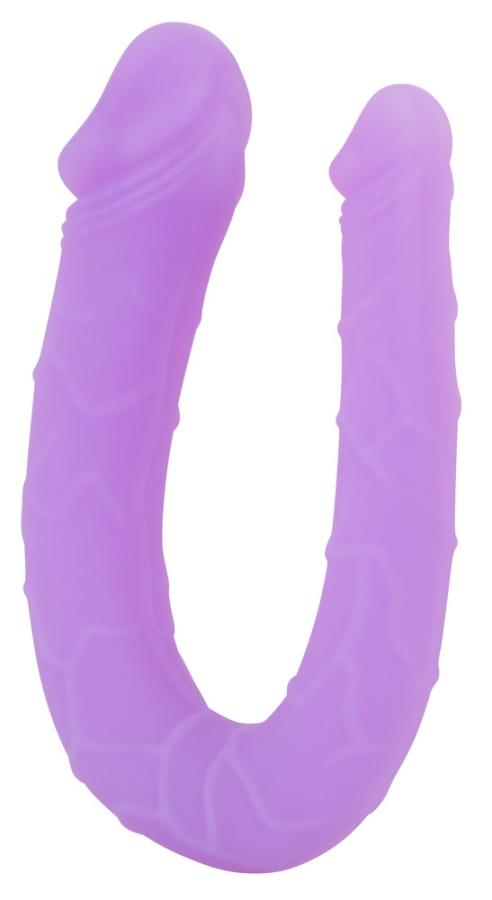 Enjoy simultaneous vaginal and anal penetration! Flexible double dildo with veins, a velvety soft surface and bulging glans at either end. Size: 15 cm long, Ø 2.6-3.5 cm. 14 cm long, Ø 1.7-2.4 cm. Material: silicone with a PU coating.