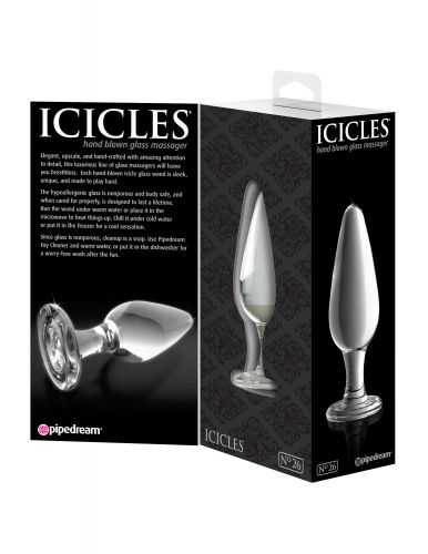 Elegante, raffinato, e realizzato a mano con incredibile attenzione al dettaglio, la linea di lusso di massaggiatori in vetro vi lascerà senza fiato! Soffiato a mano, il fallo Icicles è elegante, unico e fatto per giocare duro. Il vetro ipoallergenico non è poroso ed è sicuro per il corpo, e se curato correttamente, è stato progettato per durare una vita. Bagna la bacchetta sotto l'acqua calda per riscaldarlo, o raffreddarlo sotto l'acqua fredda per una sensazione di freschezza.
