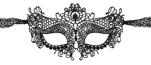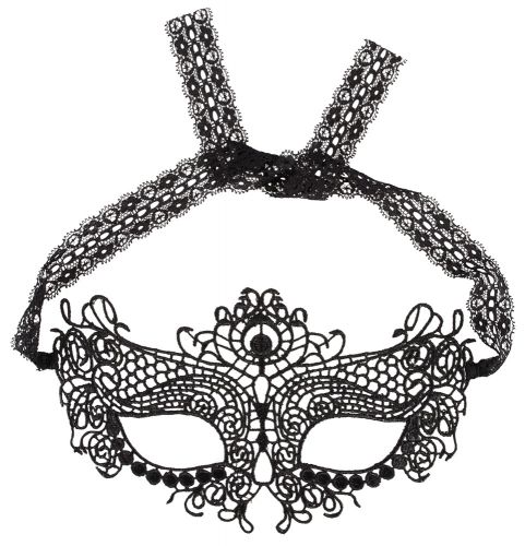 Maschera nera in stile gotico finemente lavorata, con nastri in satin tono su tono per legarla posteriormente a proprio piacere.