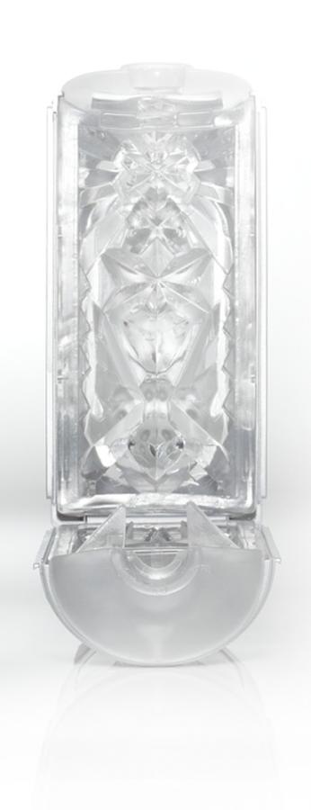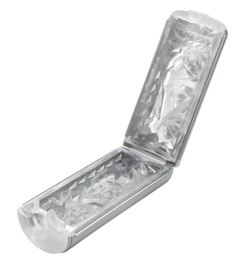 Masturbator in futuristic design with various soft internal nubs, grooves and spikes. Hinged, easy to clean. Silver-coloured. Length approx. 18 cm. Material: ABS (outer), silicone (inner).