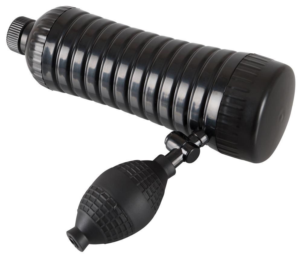 Hey guys!Masturbator in a can with pump-function and vibration. With massage nubs in the lust tunnel and vacuum pump with outlet valve and removable mini vibe with 1-level vibration. Black. Total length 24.5, penetration depth 13 cm. Inner ø 4.7 (non-inflated) and inflatable to a very tight size. Can with screw top. Material: ABS, TPE. (Please order batteries separately: 2 x Micro/AAA)