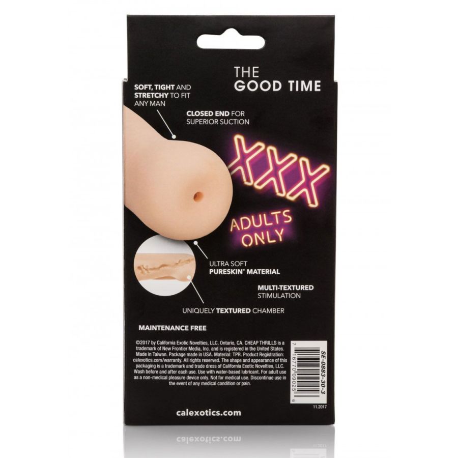 Concediti emozionanti sogni bagnati con lo spettacolare stroboscopico masturbatore maschile Cheap Thrills ™ Good Time. Il design ad estremità chiusa offre un'aspirazione superiore, mentre la camera dalla trama unica e il materiale UltraSkin estremamente morbido ed elastico abbagliano con una sensazione realistica. A casa o ovunque ti porti piacere, Cheap Thrill The Good Time, 4,75 "(12 cm) è la compagna di viaggio che desideri. Il Premium PureSkin ™ è inodore, privo di ftalati e esente da particolare manutenzione.Prima e dopo l'uso pulire il masturbatore con acqua e sapone neutro e risciacquare. Si consiglia di usare anche uno spray detergente igenizzante per sextoy