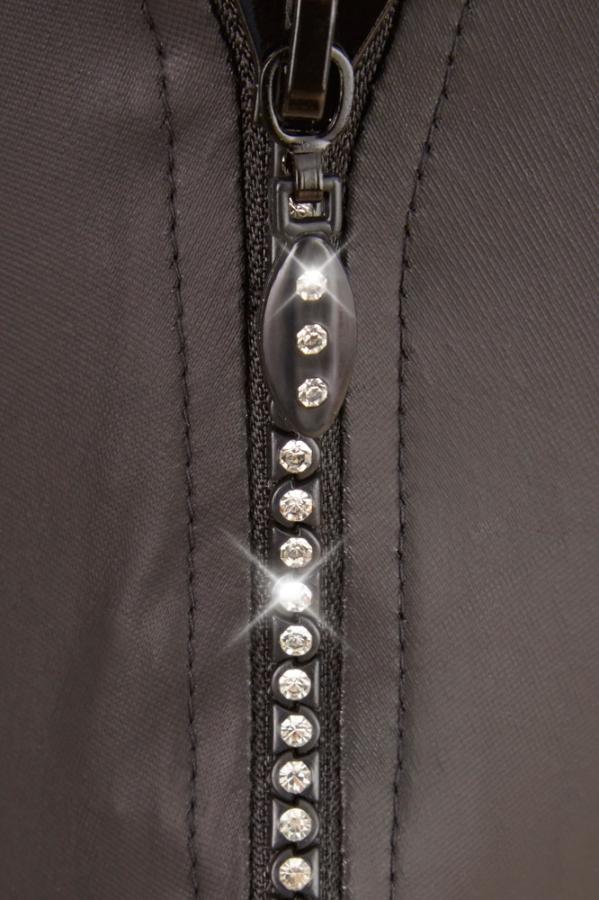 Beautiful matte neoprene with rhinestones!Sexy black string with a sparkling extra: there is a rhinestone zip at the front that opens the string in the blink of an eye!60% polyurethane, 36% polyester, 4% elastane.
