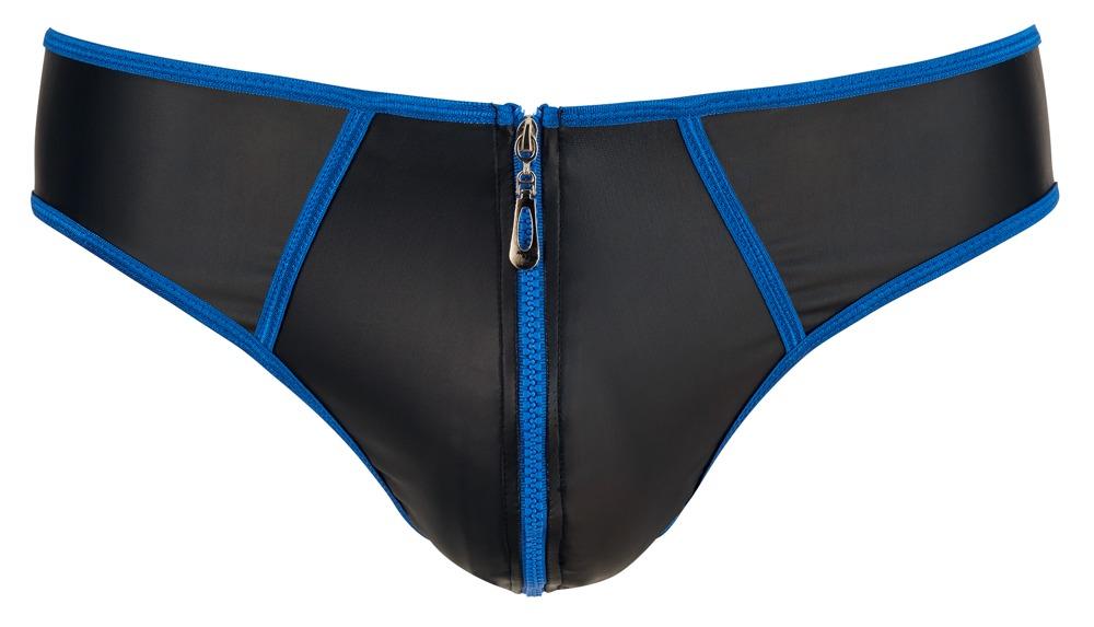 Look di tendenza con pratica cerniera!Slip in look opaco nero leggermente elastico con orli bordati e cerniera in colore blu a contrasto. 60% poliuretano, 36% poliestere, 4% elastan.