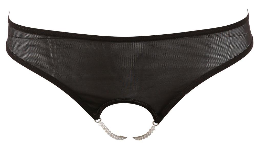 Thrilling and seductive at the same time! Tiny string with two rows of pearls over the completely open crotch area. Made out of semi-transparent powernet. Very stretchy and a perfect fit. 90% polyamide, 10% elastane.
