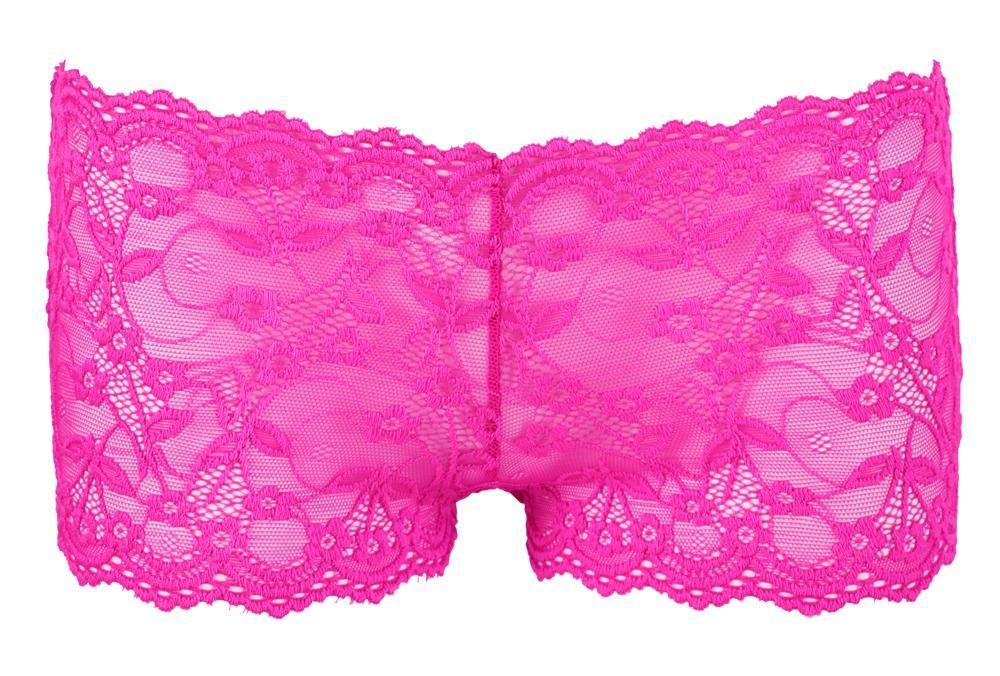 These cute and charming panties are made out of delicate floral-patterned lace in pretty pink. The back is almost completely open - the lingerie is only held together by four narrow straps that emphasise the bum in a really sexy way. A big bow at the back adds the perfect finishing touch to your erotic appearance. 94% polyamide, 6% polyester.