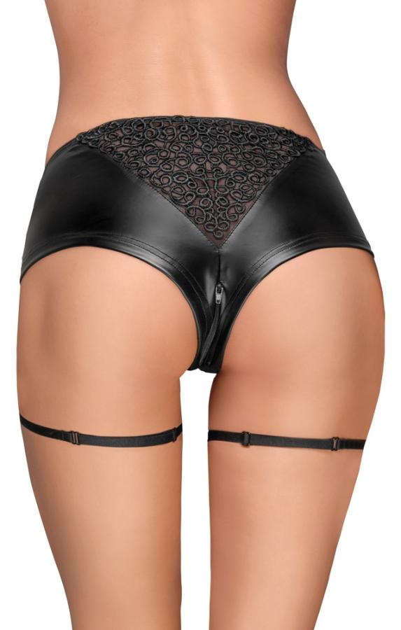 Tirate fuori il meglio dalle vostre curve!Collant altamente elastico in wetlook nero opaco lucido. Con cerniera a due vie nel cavallo, inserto di ricamo triangolare sul retro e2 bretelle regolabili con piccolo fiocco.80% poliammide, 20% elastan.Attenzione, il Noir ha una tabella delle dimensioni a parte!