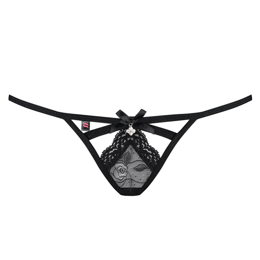 This sexy thong loves to give amazing sensations and plenty of great pleasure. Wanna feel it? Go ahead! Let frivolous straps, cute bow and shiny jewel make you look incredibly tempting. And let your lover watch you – all night long!