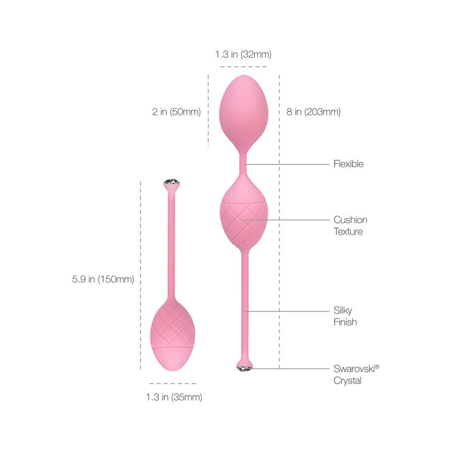 Le palline di piacere Frisky sono perfettamente equilibrate sia per aumentare il tuo desiderio sia per rafforzare i tuoi muscoli. Queste sfere in ottimo silicone offrono un movimento oscillante stimolante seguendo i tuoi naturali movimenti e con la parte finale adornata da un bellissimo cristallo Swarovski®. Questo è un sexy segreto che adorerai mantenere.