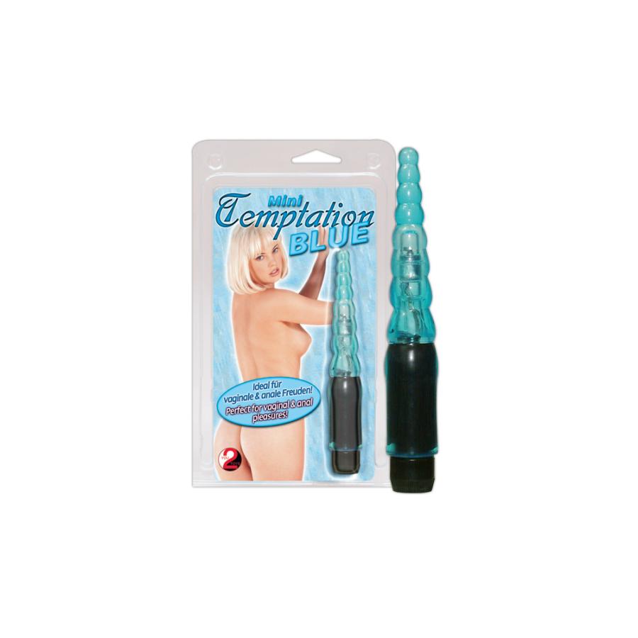 Nel design scanalato con punta affusolata. Vibrazione a regolazione continua. Ca. 13,5 cm di lunghezza, Ø 0,7-2,1 cm. Blu. Materiale: PVC.