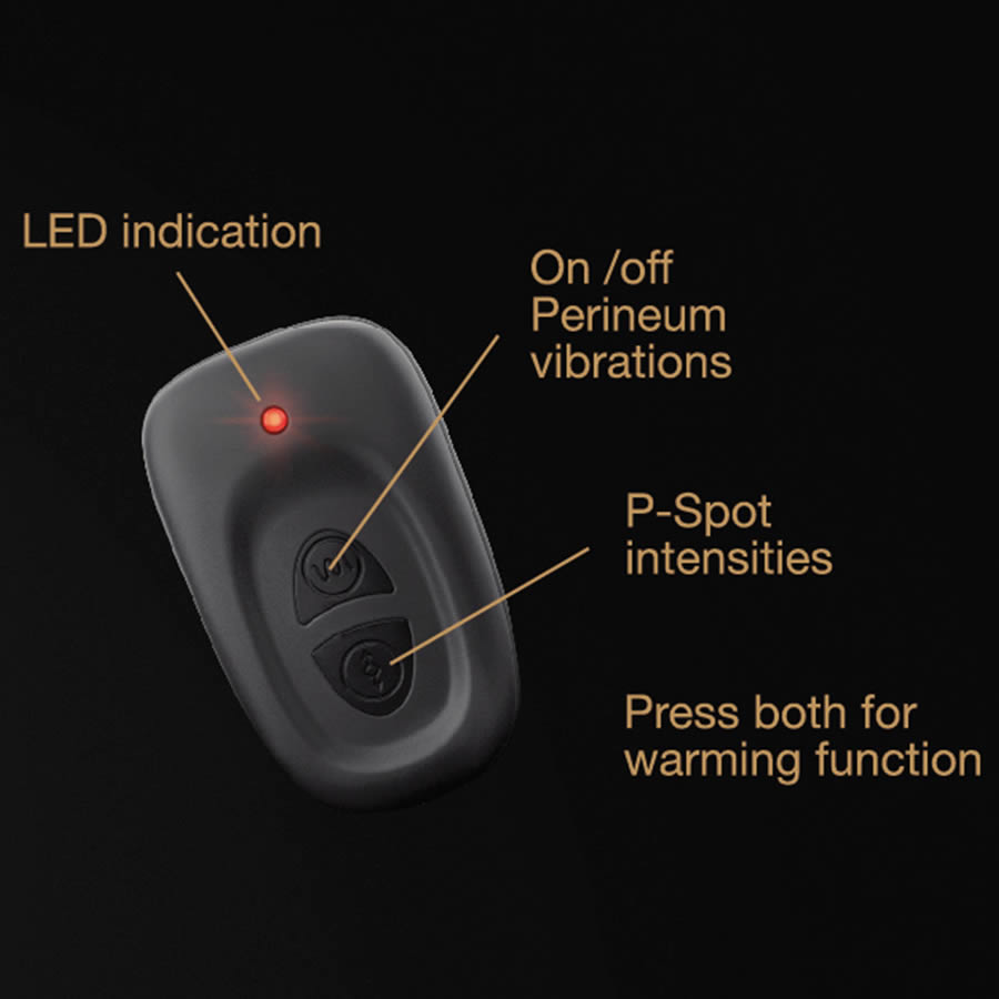 Plug anale vibrante e stimolatore prostatico con doppio motore e telecomando. Funzione riscaldamento (fino a 37,5 °C) Massaggiatore punto P con testa rotante 3 velocità di rotazione e massaggiatore perineo 16 vibrazioni, ricaricabile USB
