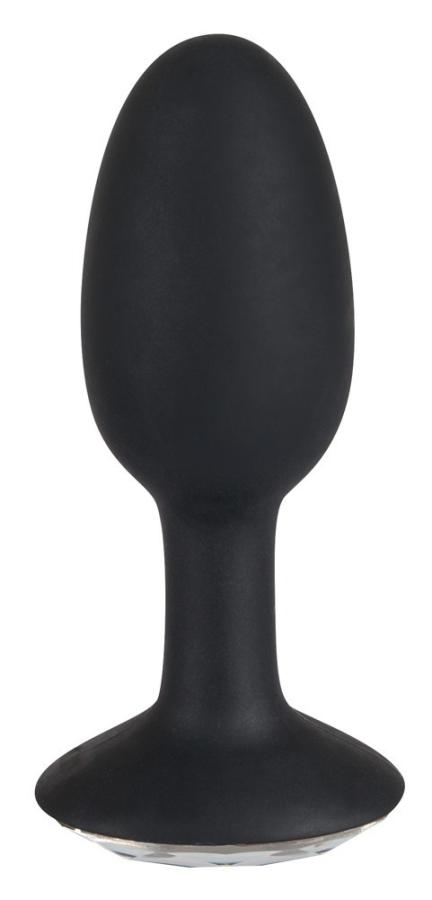 Penetrating gem!Flexible egg-shaped anal plug with colourless gem at the end. Black. Total length 8.5 cm, Ø 1.4 to 2.8 cm. Material: silicone, acrylic.