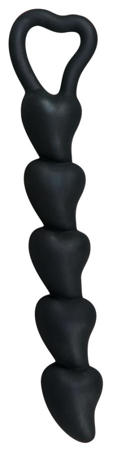 Amante insistente!Vellutata morbida corda anale di cinque palline a forma di cuore e un anello di ritorno. Nero. Lunghezza totale 18,5 cm, profondità di inserimento 15 cm. Ø da 1,3 a 2,6 cm. Materiale: silicone.