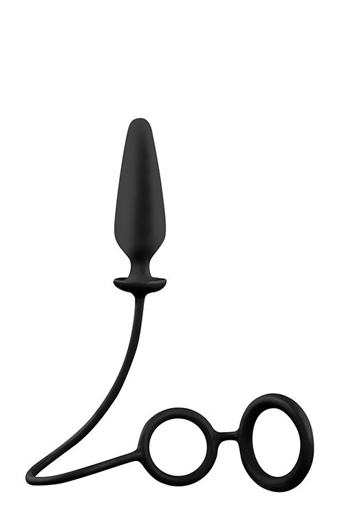 Anal plug with strap and double penisring.Hygienic silicone.Flexible connecting line.There is a double ring attached to this butt plug with a flexible string, so this toy can provide anal pleasure and at the same time make the erection stronger and longer lasting. The anal plug has a conical shape, a length of 9 cm and a diameter of 3.0 cm. The rings can be used as a double cock ring or as a combination of penis ring and scrotum ring.