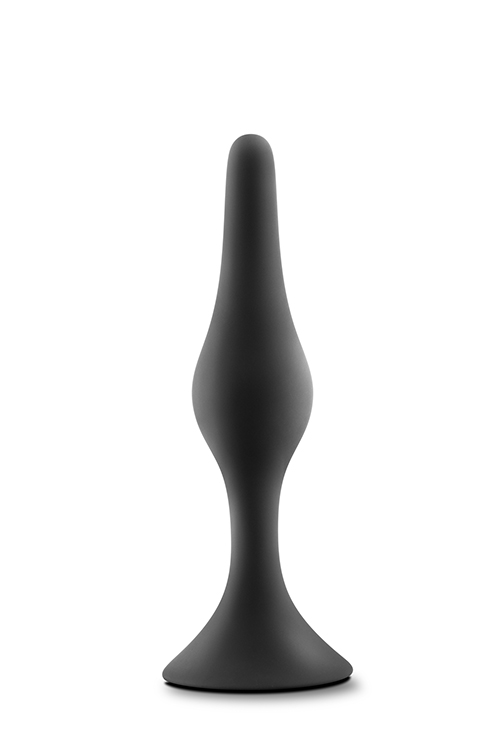 Soft tapered head and slim shaft are comfortably and easily inserted. Satin smooth silicone feels amazing. Suction cup base anchors Plug safely outside the body.