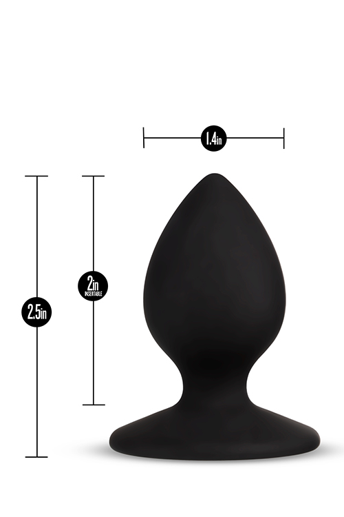 Base includes an expressive message. Tapered for easy insertion, round base securely anchors plug outside. Satin smooth finish and comfortable sizing. Safe silicone.