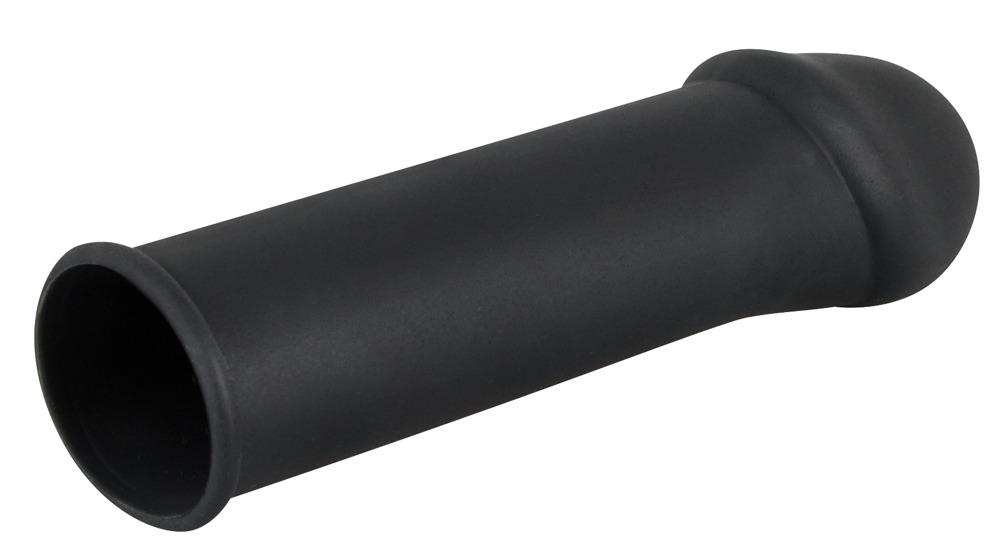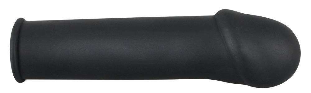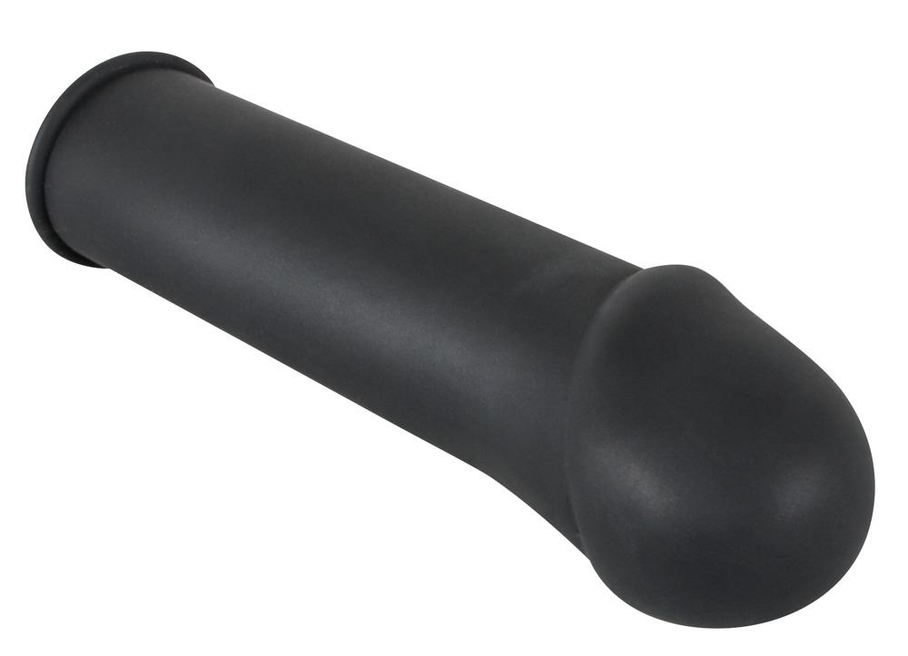 Una mascolinità straordinaria!La guaina del pene nero con glande riempito si estende il SUO pezzo migliore di 2 cm.Lunghezza totale 16 cm, Ø 3,5 cm (leggermente allungabile). Materiale: silicone con rivestimento in PU.