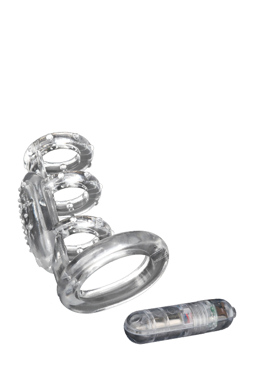 Vibrating penis cage.Four stretchable rings. Single speed vibrating bullet.Length 8 cm. Diameter 2 cm.Batteries included.The vibrating Crayfish is a cock cage that can enhance the erection. The four rings are made of soft TPE and super stretchy. They will prevent blood flowing back from the penis and will delay ejaculation. The single speed vibrating bullet can be inserted in a special pocket on the sleeve, and will arouse both partners.