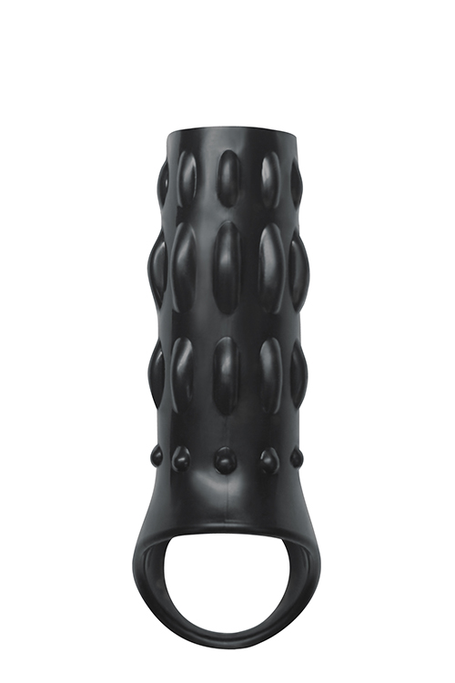 The Reversible Power Cage redefines versatility. Available in two colors, striking black or voyeur clear, this TPE power cage features large defined nubs to pleasure your partner during penetration. Flip the cage inside out and experience the textured surface yourself! TPE is stretchy, non-sticky, water-play friendly and enjoyable with lubricant. Easy to put on. Easy to clean. Add a little more easy to your intimate encounters.