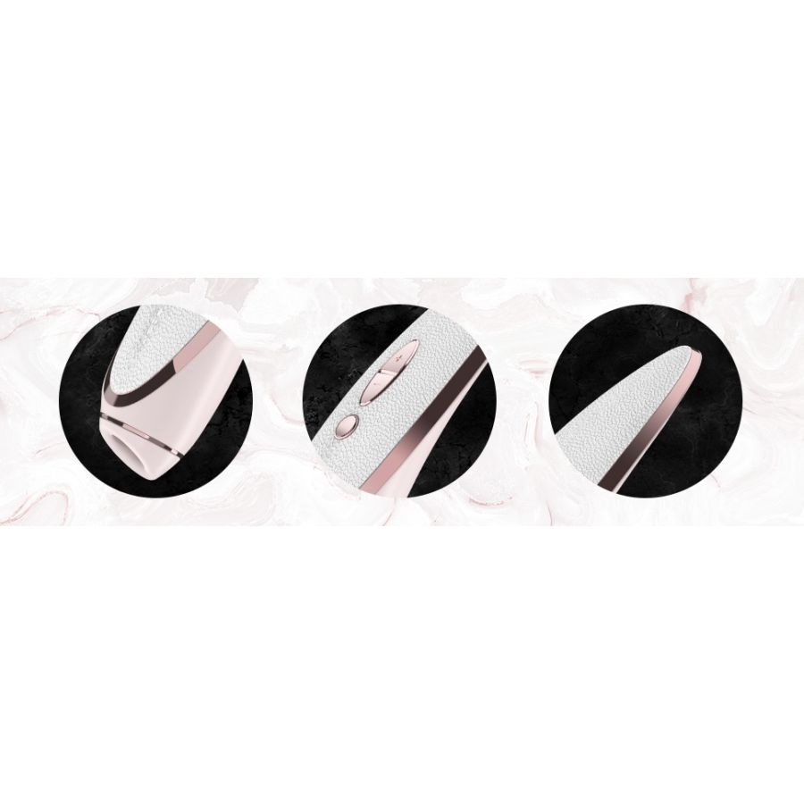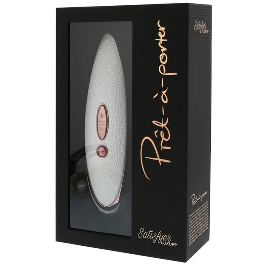 Questo anello in silicone medicale extra-morbido si appoggia con flessuosa eleganza attorno alla tua perla del piacere e la coccola con la ben nota stimolazione mozzafiato ad onde pressorie di Satisfyer. Grazie all’uso intuitivo puoi scegliere le tue preferenze personali tra 11 intensità e godere la celestiale sensazione della stimolazione della clitoride senza contatto. La forma ergonomica del Satisfyer Luxury Prêt-à-porter sta comodamente in mano e, grazie alla parte superiore in raffinata pelle dalla struttura sensuale, ti regala la sensazione di giochi regali con tattilità avvolgente. Gli elementi in vero metallo color oro rosa e il corpo satinato in rosa delicato completano perfettamente il design lussuoso.