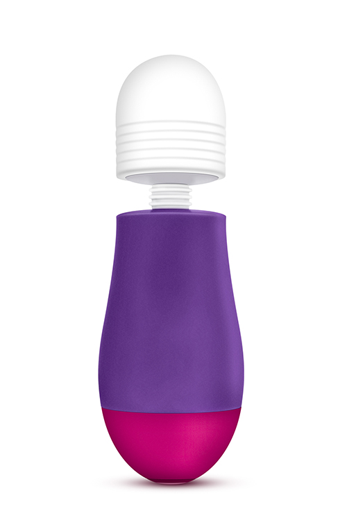 Plum colored vibrating wand massager. 10 deep, rumbly vibrating functions. 5 Speed settings. 5 Unique patterns. Flexible neck. Smooth satin finish for a sensual feel. Waterproof. Batteries not included.