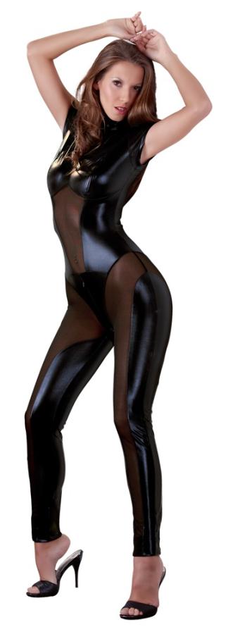 Hot eye-catcher!Shimmering black wetlook fabric with ingeniously placed powernet inserts. The zips above the nipples and in the crotch area are extremly hot. Easy to put on and take off thanks to the covered full-length zip running from neck to bottom. 62% polyester, 30% polyamide, 8% elastane.