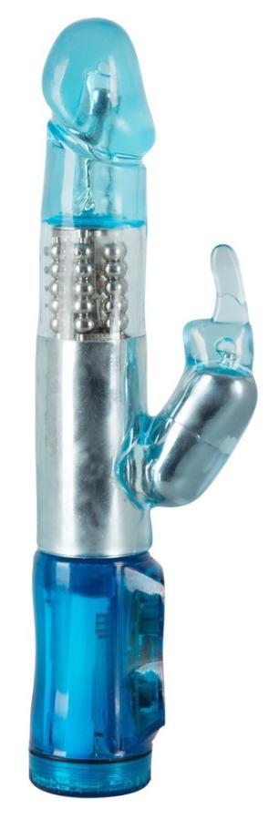 Sai come gestire un coniglio?Allora questo vibratore di perle blu con il suo braccio irritante del clitoride a forma di coniglio è proprio quello che fa per voi! Vibratore con glande pronunciato e superficie liscia che permette la visione delle perle nel fusto. 12 ritmi di vibrazione e 3 velocità di rotazione con cambio di direzione opzionale vi faranno andare avanti mentre la punta ruota con essa. La vibrazione e la rotazione possono essere controllate separatamente con la semplice pressione di un pulsante. Lunghezza totale 21,5 cm, profondità di inserimento 10 cm, Ø 2,7-2,9 cm. Materiale: TPR, ABS. (Si prega di ordinare le batterie separatamente: 3 x Micro/AAAA)