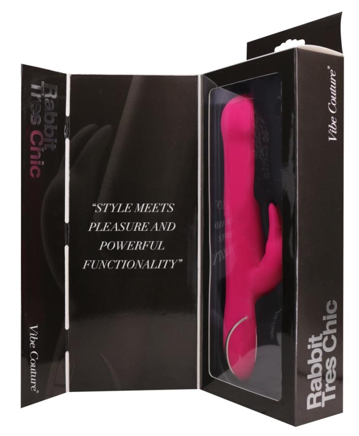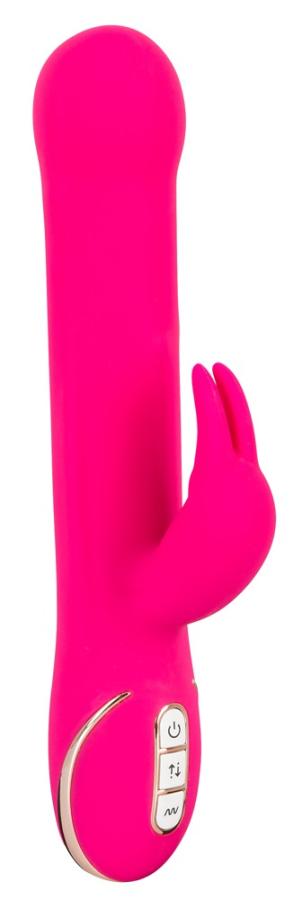 Rechargeable, waterproof pink vibrator with silver-coloured parts for decoration. With a round G-spot tip, massage beads in the shaft and rabbit-shaped clit tickler with movable ears. It feels extremely realistic, thanks to the silicone. The clit tickler has 7 vibration patterns and an up-and-down movement of the beads in three speeds. Rechargeable using the included USB cable. (Charging time 2.5 hours).Complete length 23 cm, insertion depth 13 cm, Ø 3.6 to 4.1 cm. Clit tickler 7 x 2.4 cm. Material: silicone, ABS, phthalate-free according to EU Regulation REACH.