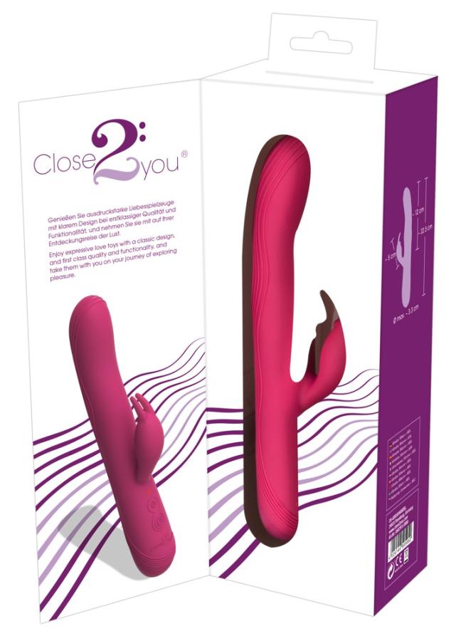Waterproof and powerful!This berry-coloured vibrator has 2 stimulating motors – one in the shaft and one in the rabbit-shaped clitoral stimulator. The new OptiGasm technology provides high and low frequencies. These frequencies create very deep vibrations that spread throughout the body. It also has stimulating grooves and can really pleasure you with its deep and extra strong vibrations that can be controlled with two buttons (On/Off button and function control button). The vibrations have 3 speeds and 4 pulsation levels. It will be almost impossible not to have an orgasm with this sophisticated, skin-friendly toy that is made out of velvety, soft-touch material!!With an LED display light and two buttons (On/Off button and function control button). It can be recharged with the included USB cable. Complete length: 22.5 cm, insertion depth: 12 cm, Ø: 3.3 cm. Material: silicone (with a PU coating), ABS. Charging time: 2 hours, battery life: 45 minutes.