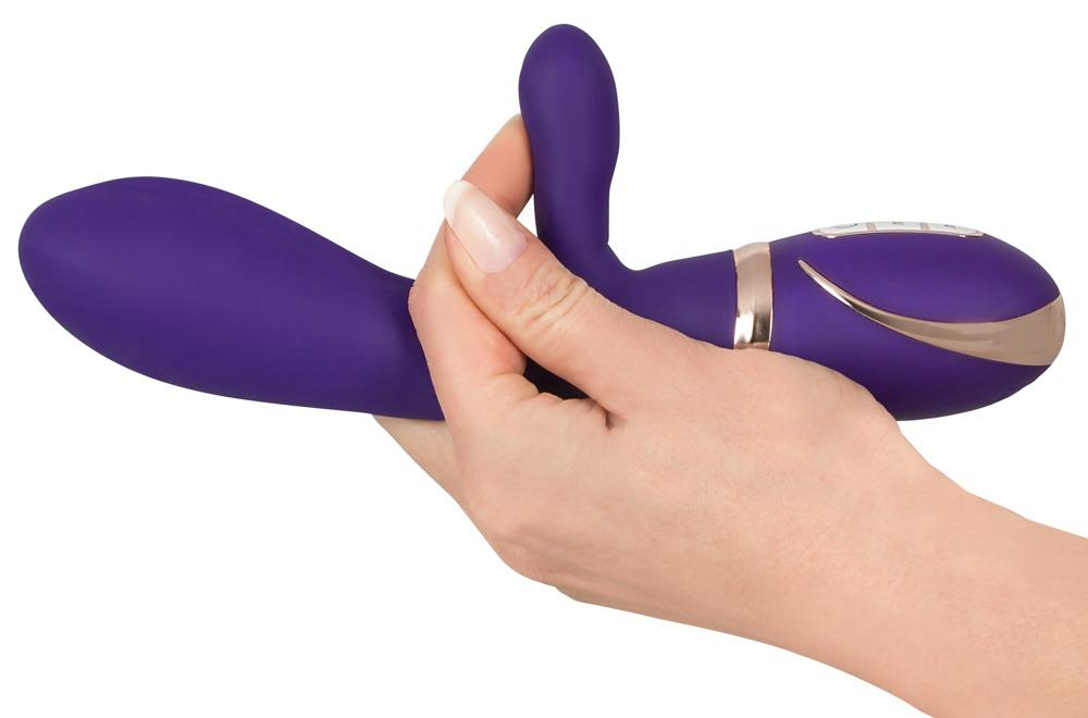 Double-layered vibrator with a soft surface, 7 vibration modes and 7 modes for the clit tickler. Complete length 22 cm, Ø 2.4–3.5 cm. The functions can be controlled separately with the buttons. Waterproof. Material: soft touch silicone, ABS, PU.Includes a USB cable and instruction manual.