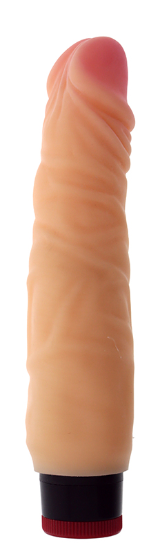 Multispeed vibrator.Soft lifelike skin, veins and contours.Made of non-smelling TPR.This multispeed vibrator has a realistic look and feel, with soft lifelike skin, veins and a straight penis design. It is made of non-smelling TPR. The vibrations can be gradually increased by rotating the knob at the base of the vibrator. Intense pleasure is created by the look, feel and exciting vibrations. The size of 7 inch (17.8 cm) is rather moderate and suitable for most users, also beginners.