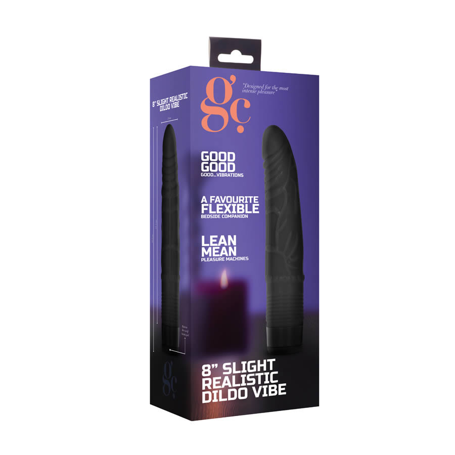 8 Inch Slight Realistic Dildo Vibe-Black