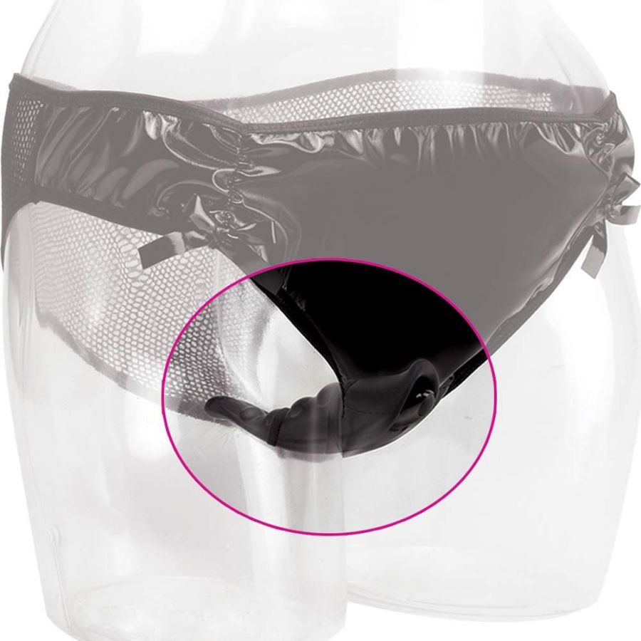 Puoi tenere un segreto? Nascosto discretamente dietro questo strap-on c'è un massaggiatore in silicone clitorideo in una posizione perfetta!