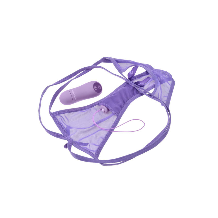 Tonight would be a night she would always remember. She had enjoyed her long, hot bubble bath and had applied her favorite lotion with sensual caresses. Now it was time to put on her petite panty thrill-her. She slid the purple panty up her legs. The see-through material was incredible sexy and it felt sensuous against her bare skin. She liked the extra details like the decorative panty straps that made this panty fit better than her expensive lingerie and made her look even more seductive. Ah, she admired her favorite panty accessory, the miniature massager, and placed it securely inside her panty’s secret inner pocket. It fit just like it belonged there. Which, of course, it did. She had chosen this petite panty thrill-her specifically to give her lover an incredibly memorable evening.