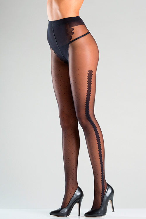 Calze bianche a rete di piccola trama con fascia autoreggente. Misura unica vestibile dalla taglia 40 alla taglia 46.